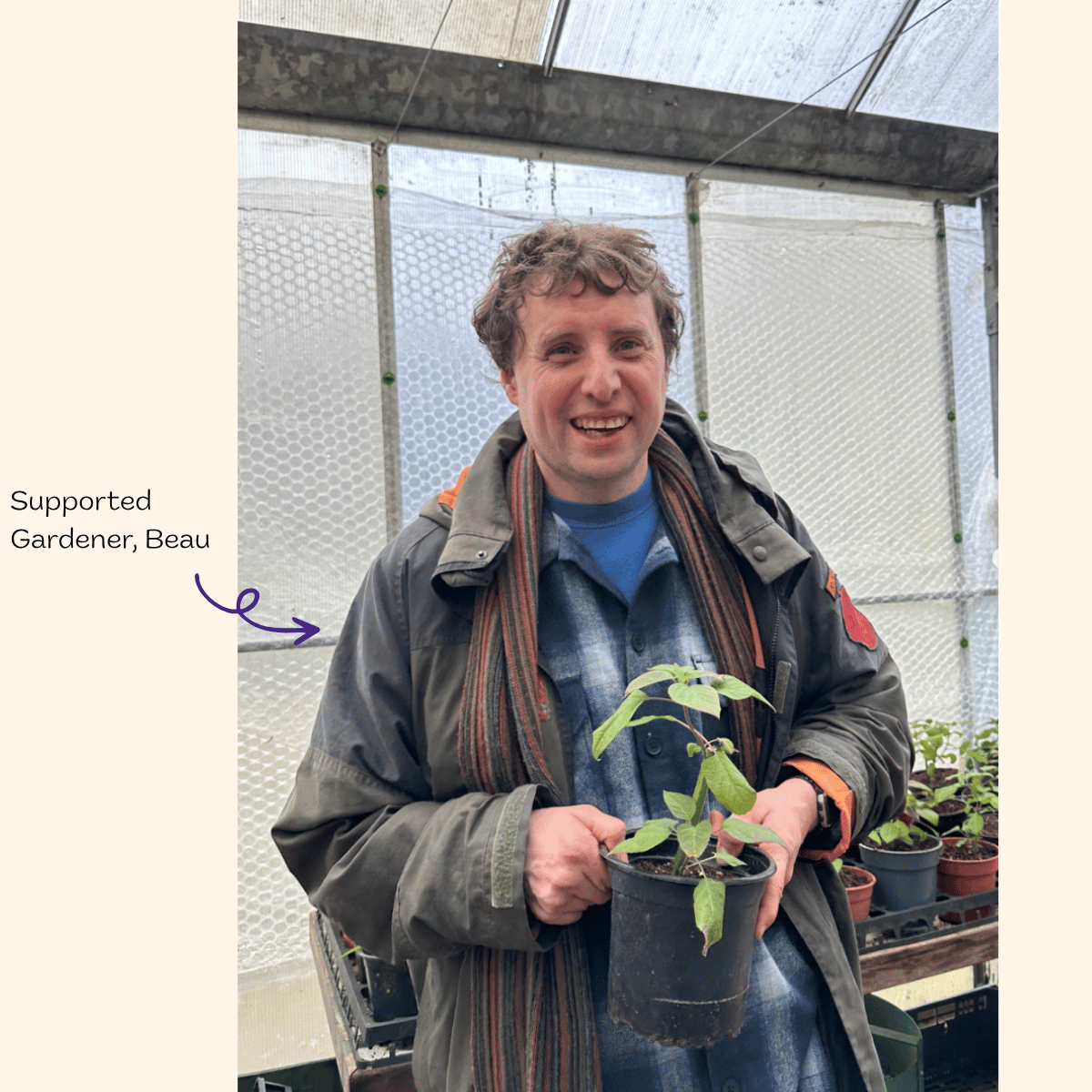 Supported gardener, Beau says: ‘I’ve been potting up all these plants so they have nice compost.’